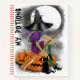 This "not very scary" witch is sitting in the pumpkin patch, with her black cat, ready to hop on her broom and fly on Halloween night. This journal can be carried with you anywhere to be used for scheduling, sketches, notes, recipes or your thoughts - no matter how frightening they may be. Title can be personalized.