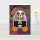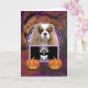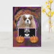 Halloween Greetings couldn't get spookier than with this Blenheim colored Cavalier King Charles Spaniel Dog helping you to send your Scary message. This design is available in close to 100 Dog Breeds. If you don't see your dog breed, let me know and I'll do my best to add it for you. It is also possible to put YOUR OWN PET, into this design and any of my other designs. Just simply contact me to find out how. This design is also available as a photo card for your to upload your favorite photo into. Perfect for your own little goblin....human or not! If there is a product that Zazzle offers and you don't find it here, let me know and I will be happy to create it for you.