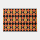 Cute jack-o-lantern pumpkins on a bright orange and black argyle.