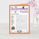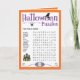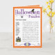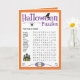 Young children will be excited to get a cute puzzle card with fun activities from you. The puzzle card is decorated with illustrations of a witch's hat, a spider, a haunted house, a mummy head, a broom, a bat, cobwebs, a skull and crossbones, cats, owls, and pumpkins with hats—the perfect activity card for your child, nephew, niece, grandchild, student, or godchild. Colors include charcoal blue, purple sagebrush, purple jam, dark gray, yellow lawn green, banana yellow, and night black. Games included: Find the twelve words, Dot-to-dot, Find the 5 cats, and Pumpkin patch maze. Inside greeting: Happy Halloween! Customize it with your child's name or a greeting. REVIEW: "Great Halloween card with several puzzles for kids to do! The printing of the card was perfect!"