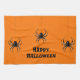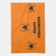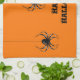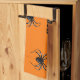 Kitchen towel with image of spiders against orange background for Halloween
