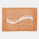 This eye-catching Halloween design features a bold and playful repetition of the word "HALLOWEEN" in a wavy, retro-inspired font. The text is arranged in multiple layers, creating a visually dynamic pattern that draws the viewer in. The central word is highlighted in a solid, vibrant orange, making it stand out from the surrounding text, which is outlined in the same color. The wavy typography adds a sense of movement and energy, perfectly capturing the spooky and fun spirit of Halloween.