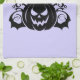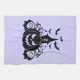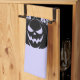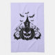 Kitchen towel is shown in a lavender color with a Halloween pumpkin print design.
