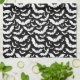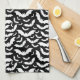Kitchen towel is shown in a black color with a Halloween bats print design.
