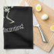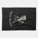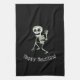 Kitchen towel shown in black with a Halloween skeleton print design. Customize this item or buy as is.