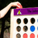 This awesome fast four set features a cute little yellow bee wizard with black stripes. The Bee has big shiny black eyes and cute little black antennae. The wings of the bee are folded back to look like a cape. The bee is wearing a tall black hat with orange and purple stars on it. It is also holding a magic wand that is star shaped and sparkles with lots of different colors.