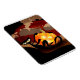 Halloween card with cute black cat playing with jack-o'-lantern.