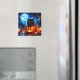 Magnet is shown with a Halloween art print of a black cat sitting in the pumpkin.