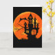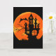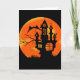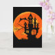 A spooky image of a creepy haunted house, complete with a flying bat overhead, all set against a blood orange full moon for Halloween.