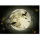 Scary Halloween night moon with crow and bats.