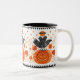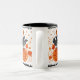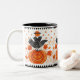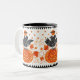 Decorative hand-drawn Jack-o-Lantern Pumpkin, Crow, Batty Moon and Leaves on white for your Halloween celebrations on a mug that can be personalized with a message, name or initials.