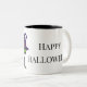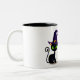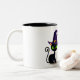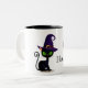 Coffee Mug shown in black and white with a Halloween witch cat print design.