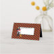 This name place card is shown in a festive Halloween striped pattern print with witch.