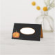 This name place card is shown in a festive Halloween pumpkin print.