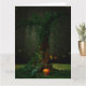 A funny skeleton, a cute bat and a creepy pumpkin celebrate at night Halloween. Spooky eye watching the three Halloween characters from the dark forest. Click on Customize to personalized the gift product!
