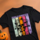 Celebrate this Halloween with our split-panel “Halloween Night” t-shirt. It is a distressed design with pastel color panels and a graphic of a skull intertwined with roses and Halloween icons such as spiders, bats, and grinning jack-o’-lantern placed in a pastel green, cream, orange, pink and purple color Platte. It is a perfect blend of spooky and stylish design for celebrating Halloween. You can customize the back of the shirt to give it a personal touch.