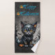 Halloween night with kitten and pumpkins. bath towel set