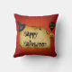 A Halloween illustration with an old paper, witch hat, a spider and 2 jack-o-lantern balloons on a red background.