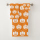 Spooky, scary, pumpkins pattern orange and white Halloween towels.