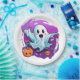 This paper plate is shown in a festive Halloween ghost print design.