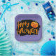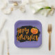 This paper plate is shown in a festive Happy Halloween scary pumpkin print design.