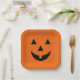 This paper plate is shown in a cute festive Halloween pumpkin face print design.
