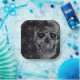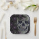 This paper plate is shown in a spooky Halloween skull print design.