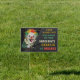 Step right up! Throw a fun, scary circus-themed Halloween haunted house party with these creepy clown double-sided yard signs. The crazy-faced clown peeks around a corner, its tongue sticking out, horns on its head, wild colorful hair waving, and a spooky claw hand reaching out. Use the easy template to add your family name / circus name. Click "customize / personalize further" if you want to alter the rest of the text. See the matching party invitations here: https://www.zazzle.com/halloween_creepy_clown_funny_adult_scary_party_invitation-256568361817845998