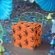 Take out style party favor box shown in orange and black with a cute Halloween witch print. Customize this item or buy as is.