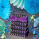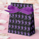 Party favor box shown in black/purple with a Halloween witch print with a purple accent ribbon. Perfect for Halloween gift giving. Customize this item or buy as is.