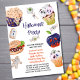 Plain white envelopes are included with paper invitations and will come to fit the invitation size you select. If you don’t need the envelopes, you may choose to not receive them by selecting the dropdown below "Envelopes" and choosing "None." If you’d like to have a design on your envelopes, you can browse all of these available envelopes to find the design that complements your Halloween Party Food And Spooktacular Fun Invitation.