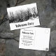 Halloween Party invitation postcard, with a spooky typography design and a black and white haunted woods image. With black and white text, you can add your own information. A creepy gothic theme to plan your next costume or Halloween celebration.