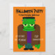 A party invitation suitable for a Halloween themed party featuring a spooky monster with a purple, black and orange theme. This invitation is fully customisable to include your own personal details.