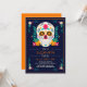 Colorful floral Sugar Skull frame. Halloween customizable party invitation.