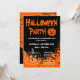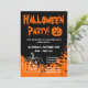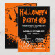 Halloween party invitations with carved pumpkins and witch on a broom Custom invites with spooky design. Personalizable announcement text and background color. Cute black and orange design with scary illustrations. Cheapest way to make your own flyers.