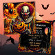 Halloween party invitations. Spooky clown with black and orange balloons for your scary adult Halloween party.