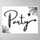 Party thist way poster will be great for Halloween party. The arrow on the party sign points straight ahead, same signs with arrow pointing to the left and to the right also available.