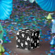 Party favor box shown with a Halloween ghosts and bats print on all panels.