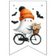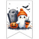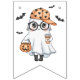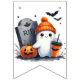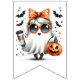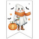 This bunting is the perfect decor for a Halloween party. There are 13 different whimsical ghosts; some riding bikes, some trick or treating with jack o'lanterns, some dressed up in their finest dresses and hats and of course one in the cemetery! It says BOO in the middle.