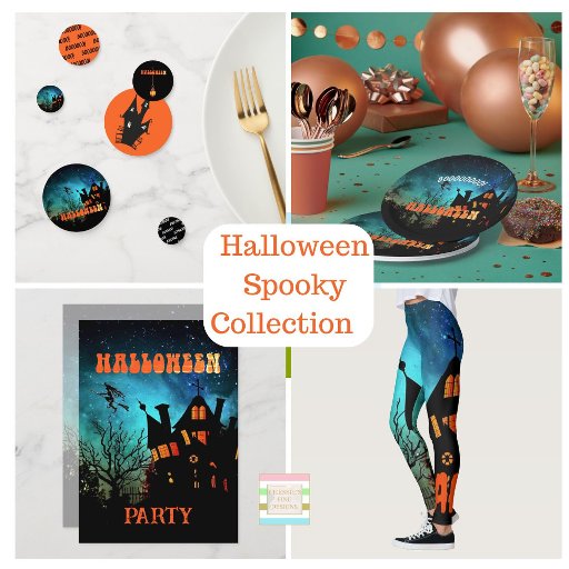 Boooooo! hangs over the dark house and the witch on her broomstick.