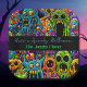 Personalized Halloween party paper plates. Spooky zombies and monsters colorful ai art.