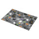 Purchased for a sister who throws Halloween block parties. Even with all the other stuff she has for this, I know she does not have this Exact one. Yeah personalization! Placemat has nice heft and is seamed around the edges well. Purchase complementary items too. Print is clear and well centered.