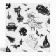 Halloween items drawn on paper, then traced in Illustrator to create pattern.