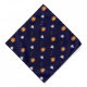 This beautiful Halloween bandana is decorated with funny pumpkins, ghosts, bats and scary eyes on a dark blue background with light glitter.