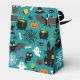 Funny Halloween pattern with bats, cats, spiders, ghosts, pumpkins, haunted house, lollipops.