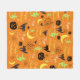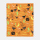 Cute and spooky orange pattern Halloween blanket or throw. Orange background with a colorful "Happy Halloween", pumpkin, ghost, witch, moon, black cat pattern. Perfect to keep you warm during the Halloween season!