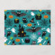 Funny Halloween pattern with bats, cats, spiders, ghosts, pumpkins, haunted house, lollipops.