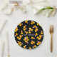 Candy corn paper party plates with pattern of randomly strewn candy corn pieces on a customizable black background and customizable text that reads, "Happy Halloween" - perfect for a kids' or adults' Halloween bash - by katz_d_zynes | part of katzdzynes' Halloween candy corn collection >>> https://www.zazzle.com/collections/119793208103154271