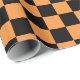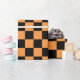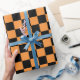 Vibrant and playful large checkered orange and black wrapping paper. This wrapping paper is perfect for adding a pop of color to any occasion, whether it's a birthday, anniversary, Halloween, or just because.