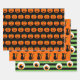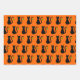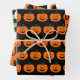 Three spooky patterns for Halloween. There is a pumpkin lantern on a black background, a black star cat on an orange background, and randomly placed monster eyes on green and black stripes.